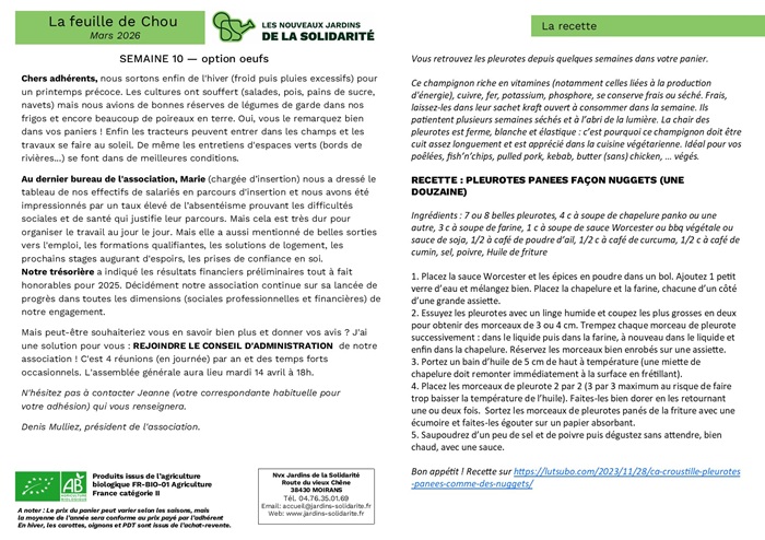 Feuille de chou de la semaine 10